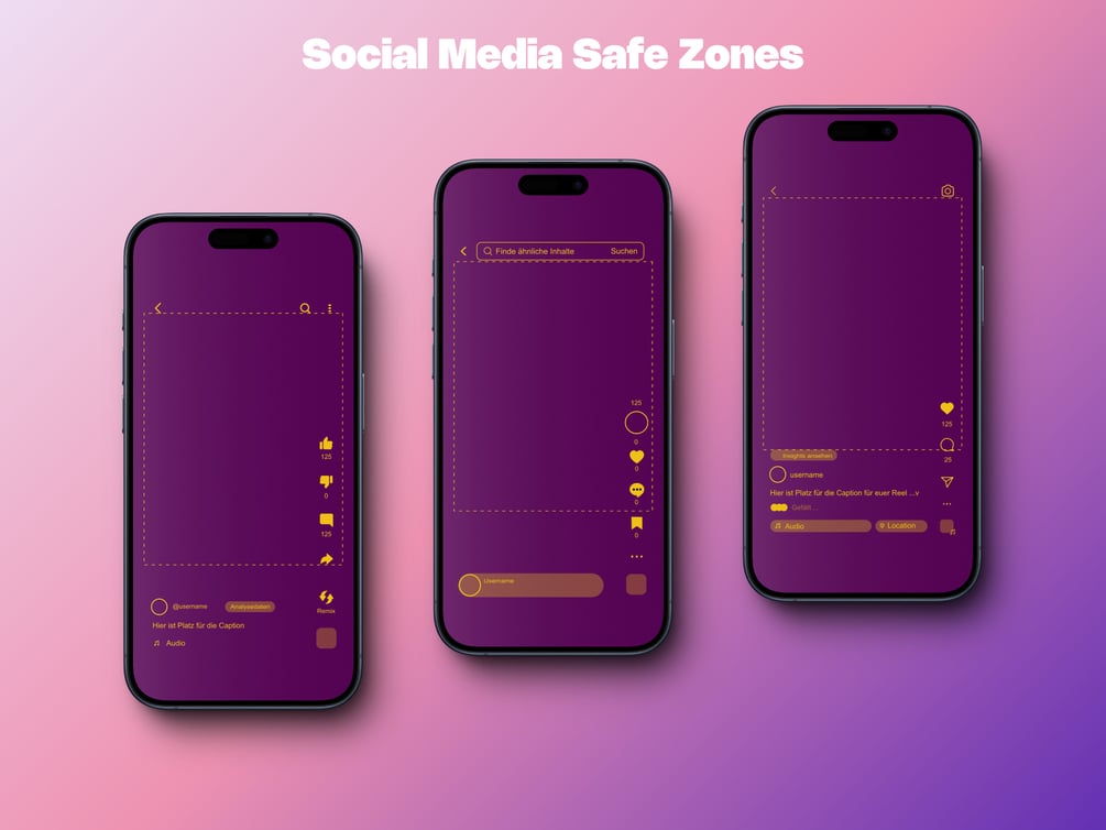 - Safe Zones für soziale Medien und Guidelines für die Gestaltung: Vorlagen, die sicherstellen, dass Ihre Inhalte auf allen Plattformen optimal angezeigt werden und der Text nie wieder hinter Social-Media-Symbolen verschwindet.